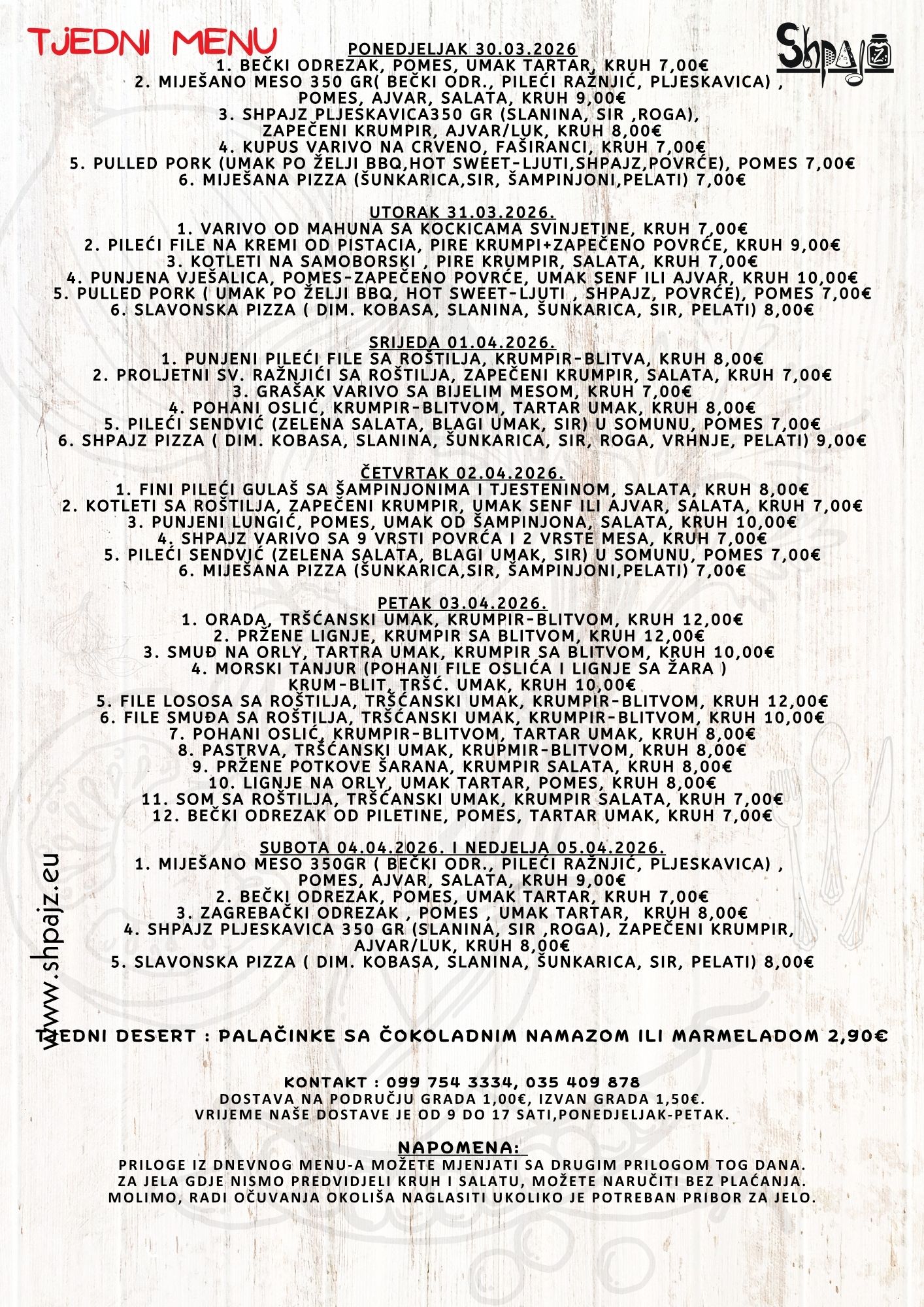 Tjedni menu